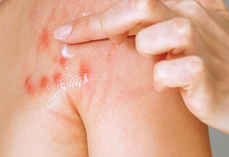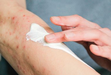 - Stosuj zimne okłady: zimno redukuje swędzenie, daje ulgę rozgrzanej od drapania skórze. Chłodny okład będzie pomocny w redukcji obrzęków. Nasączone wodą opatrunki wykonane z gazy lub siatki chirurgicznej aplikowane na swędzące miejsca nawilżą i ukoją skórę, chroniąc jednocześnie naskórek przed drapaniem.