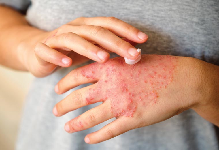 - Codziennie nawilżaj skórę: przynajmniej raz dziennie aplikuj na zmienioną skórę hipoalergiczny, bezzapachowy krem nawilżający. Wybieraj bogate, tłuste formuły, które dobrze zabezpieczą barierę ochronną skóry.
